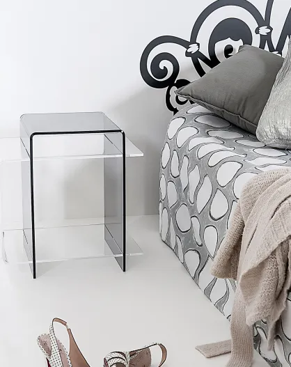 Mesita de café/mesita de noche de los 70 transparente ahumado - 45x33x47 cm