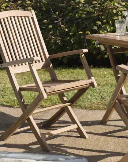 2 divertidos sillones apilables de teca maciza - 60x62x92 cm
