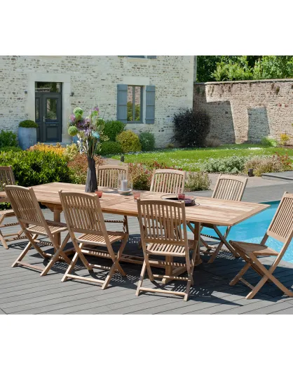 Set 1 mesa rectangular y 8 sillas Java Maeva teca - 200/300x120x75 cm