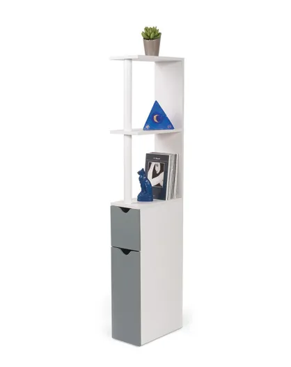 Estante de inodoro gris con 2 puertas, 15,2x29,8x118 cm