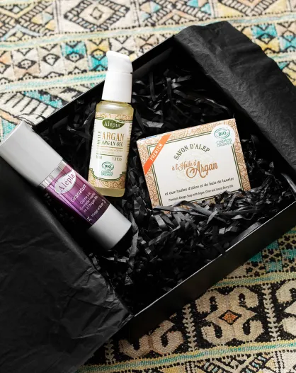 Set suave: aceite de argán y jabones de Alepo al 5%, 25%, 7 aceites, 4 piezas