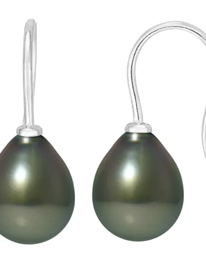 Pendientes Violaine Silver con perlas tahitianas, color negro, Tahití