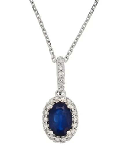 Colgante de diamantes de cortesía con zafiro de 0,09 quilates y oro blanco de 0,6 quilates