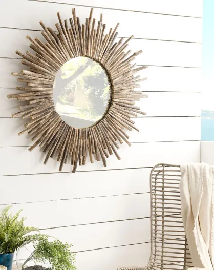 Espejo modelo sol redondo de ratán kally miel - D.100 cm