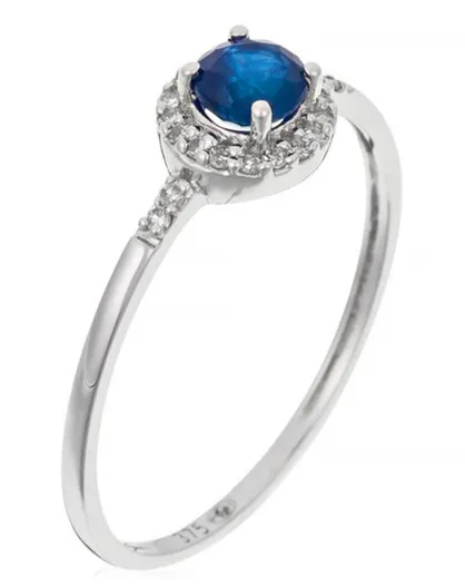 Anillo de oro blanco con diamantes de 0,05 quilates y zafiros de 1,35 quilates
