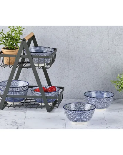 Patrón de 6 cuencos azul oscuro azul oscuro - D.21 cm