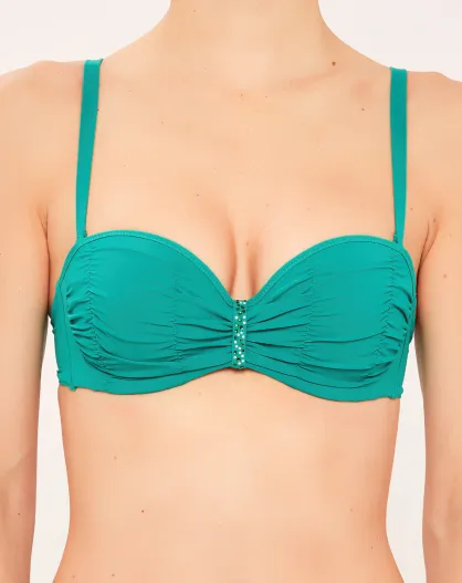 Top de bikini tipo bandeau de concha drapeada verde