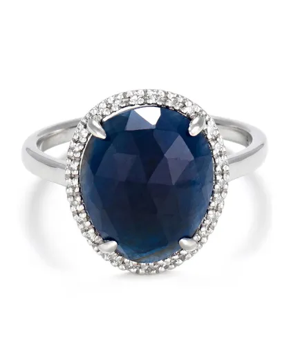 Anillo Sitra en oro blanco con diamantes de 0,08 quilates y zafiro de 1,26 quilates
