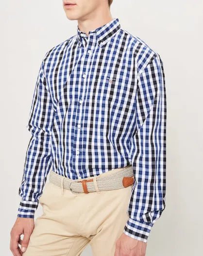 Camisa recta a cuadros negro/blanco/azul