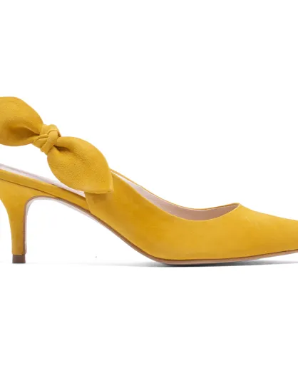 Slingback Adèle de piel aterciopelada amarilla, tacón de 6,5 cm