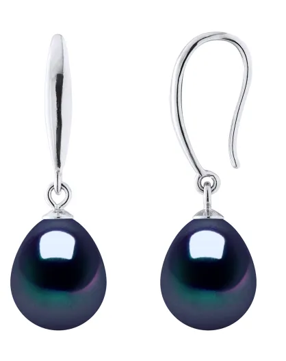 Pendientes de plata y perlas cultivadas de agua dulce con peras negras