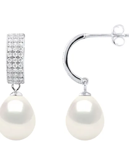 Pendientes semicriollos de plata en perlas cultivadas en agua dulce, peras blancas