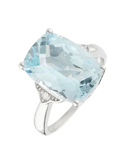 Anillo de oro blanco con diamante de Pattaya de 0,05 quilates y topacio de 6,40 quilates