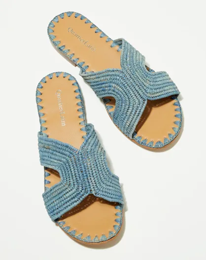 Mules de rafia azul