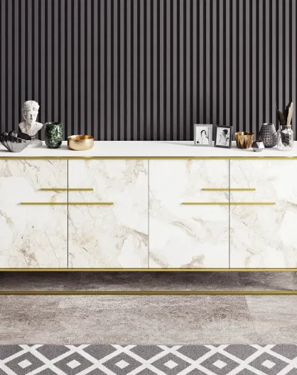 Aparador Kiev de nogal y mármol blanco - 160x78x35 cm