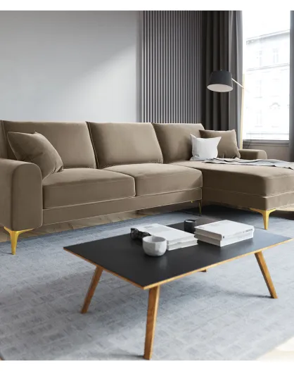 Sofá de esquina derecha Velvet Jasmine 4 plazas beige - 250x170x72 cm
