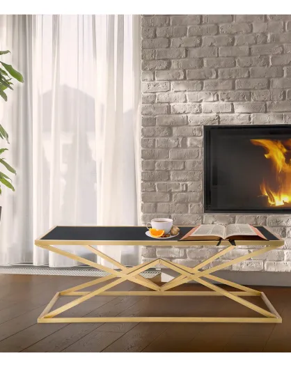 JONAS - Mesita rectangular de aluminio con tapa negra y patas doradas
