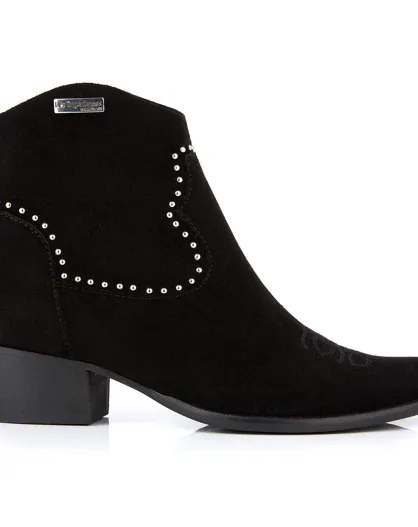 Botas vaqueras negras de piel de terciopelo Astrid