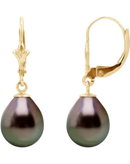 Pendientes durmientes en oro amarillo y perlas en forma de pera de Tahití
