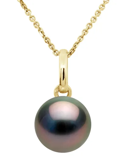Colgante de oro amarillo y perla redonda de Tahití Ø 7-8 mm