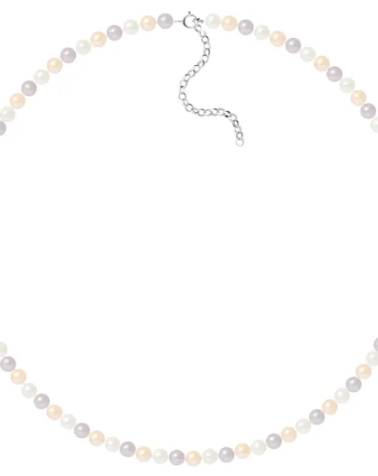 Collar de cadena de plata y perlas redondas naturales de agua dulce en tonos pastel, Ø 5-6 mm