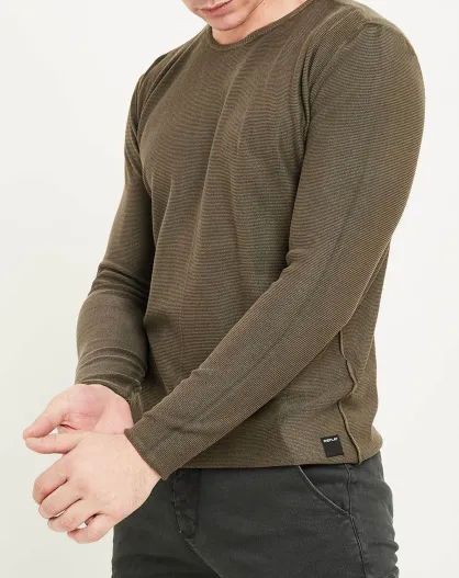 Jersey de cuello redondo color caqui lavado