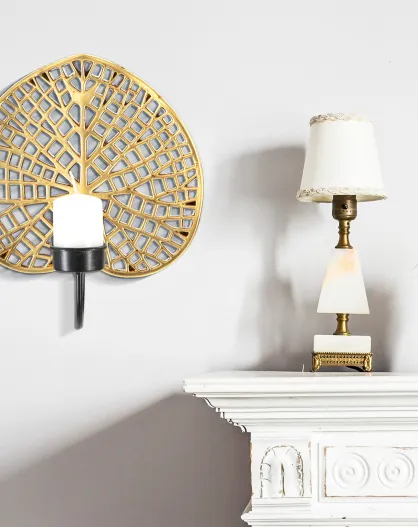 Portavelas de pared en forma de hoja dorada - 66x14x56 cm