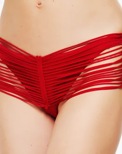 Pantalones de baño brasileños con volantes en rojo jade