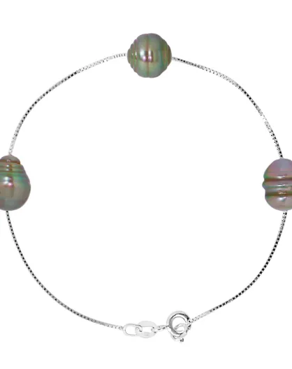 Brazalete Prestige en plata y perlas tahitianas en círculos