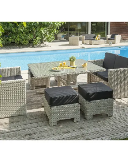 Set de jardín Océane de resina tejida para 8 personas y funda protectora color crema