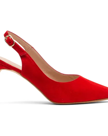 Slingback Adèle de piel aterciopelada roja, tacón de 6 cm