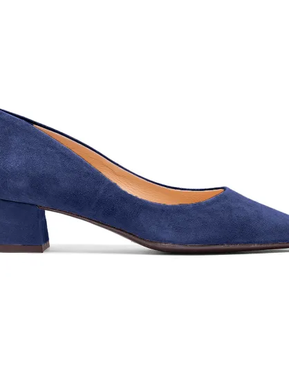 Manitas June de piel y terciopelo, color azul marino, tacón de 3 cm