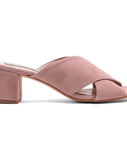 Mules dua de piel aterciopelada rosa, tacón de 5 cm