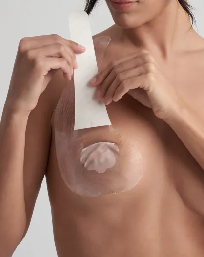 Cubrepezones y escote perfectos de satén beige