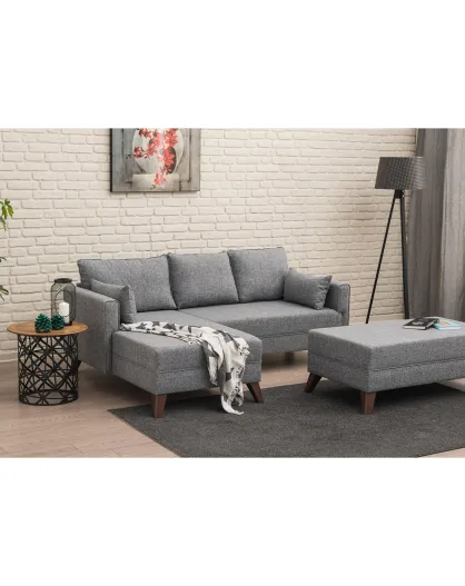 Sofá convertible en esquina izquierda + otomana Bella gris - 205x85x140 cm