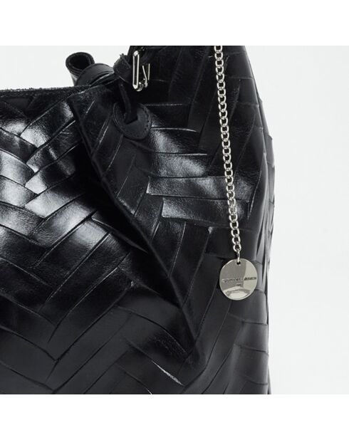 Minibolso de hombro Emy de piel de cocodrilo negro - 12x17x8 cm