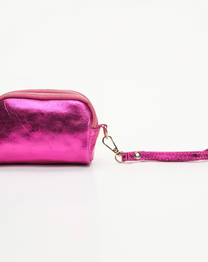 Cartera Doreen de piel fucsia - 11x7x4 cm