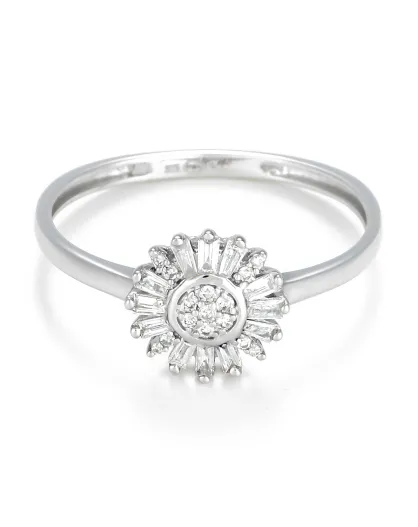 Anillo solar de oro blanco y diamantes de 0,15 quilates