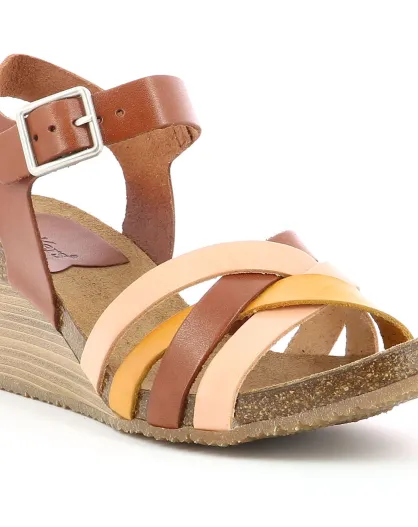Sandalias de piel Solynia rosa/marrón/amarillo - Tacón 7 cm