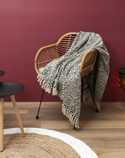 Estampado étnico a cuadros con flecos crudo/negro - 150x120 cm