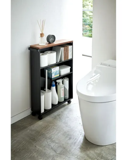 Carrito estrecho negro Tower con ruedas - 13x47,5x68 cm