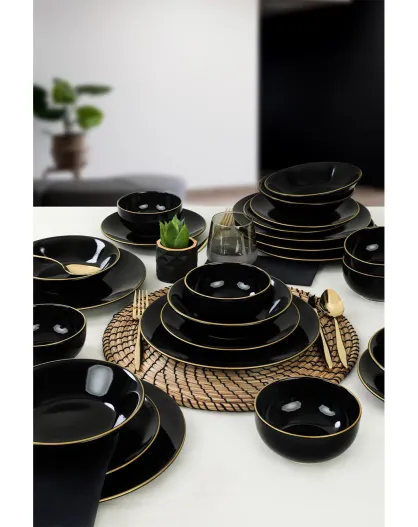 Juego de vajilla negro/dorado - 24 piezas