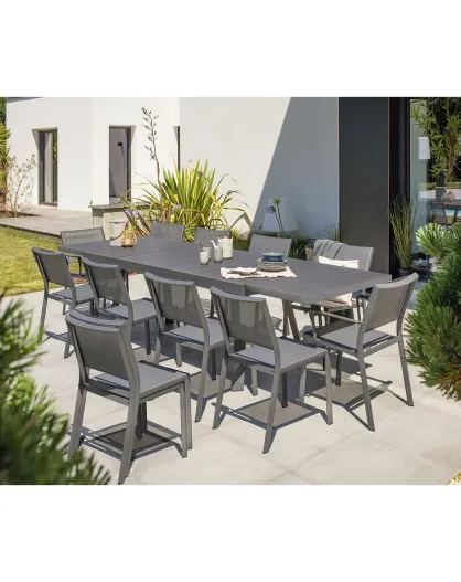 Set de jardín FLORIDE mesa con extensión + 8 sillones apilables gris antracita