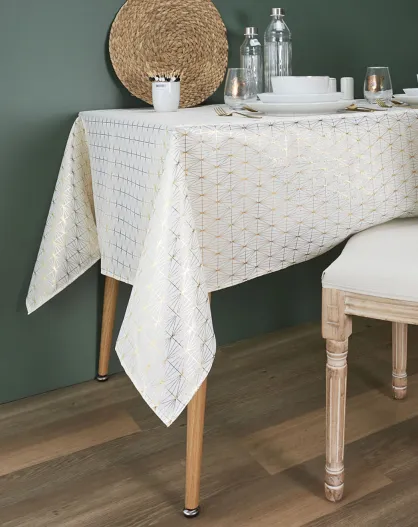 Mantel con motivos geométricos blanco/dorado - 250x140 cm