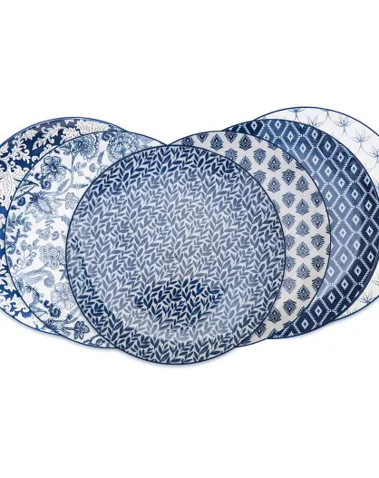Juego de 6 platos de postre de porcelana INTERIORS azules - D.21 cm