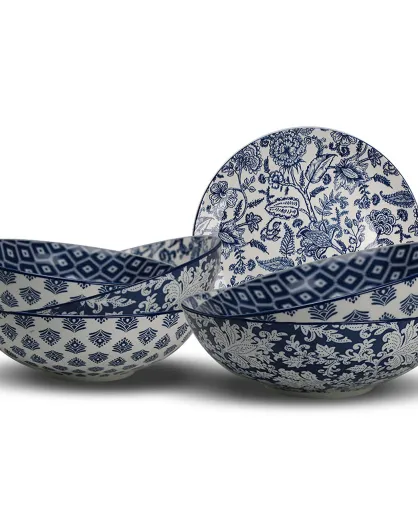 Set de 6 platos soperas de porcelana INTERIORS azules - D.19 cm