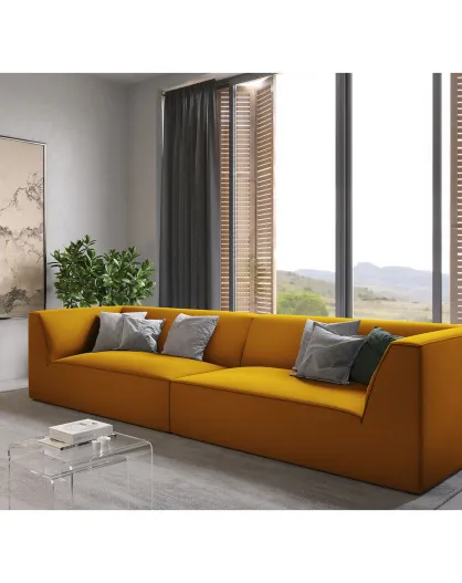 Sofá recto amarillo Velours Sao de 4 plazas - 302x93x69 cm