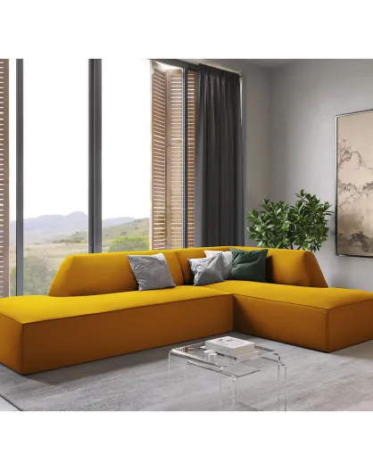 Sofá de esquina derecha de 4 plazas de terciopelo amarillo Sao - 273x180x69 cm