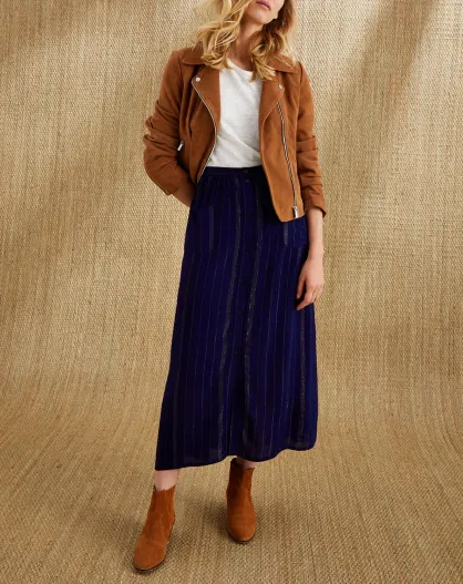 Falda larga abotonada azul marino iridiscente
