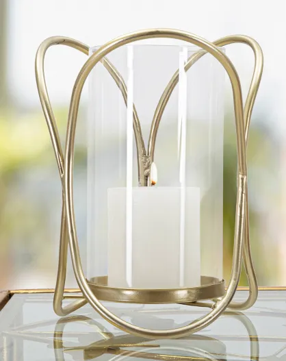 Portavelas Glox de metal dorado - D.16x21.5 cm